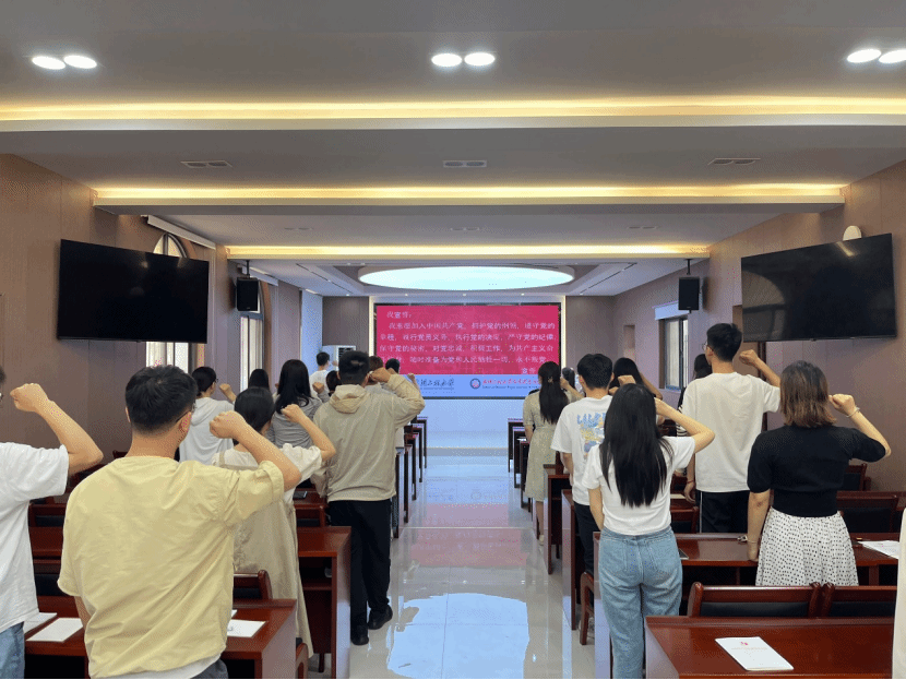 会议第二项,由邹建婷同志领誓,支部全体党员重温入党誓词,重忆入党初心。