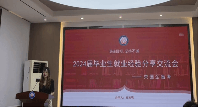 最后,签约中储粮集团的杜若男从“招聘信息的获取”“简历的制作与投递”“笔试面试的备考”等方面分享了自身的经验。她讲述了自己投递国企的招聘流程以及面试过程中的常见结构化问题,建议同学们对于简历中的个人经历要非常熟悉,同时也建议同学们在选择就业岗位时清楚自己的需求,在平时的学习工作中锻炼提升自己的岗位技能,以积极的心态应对未知的难题。